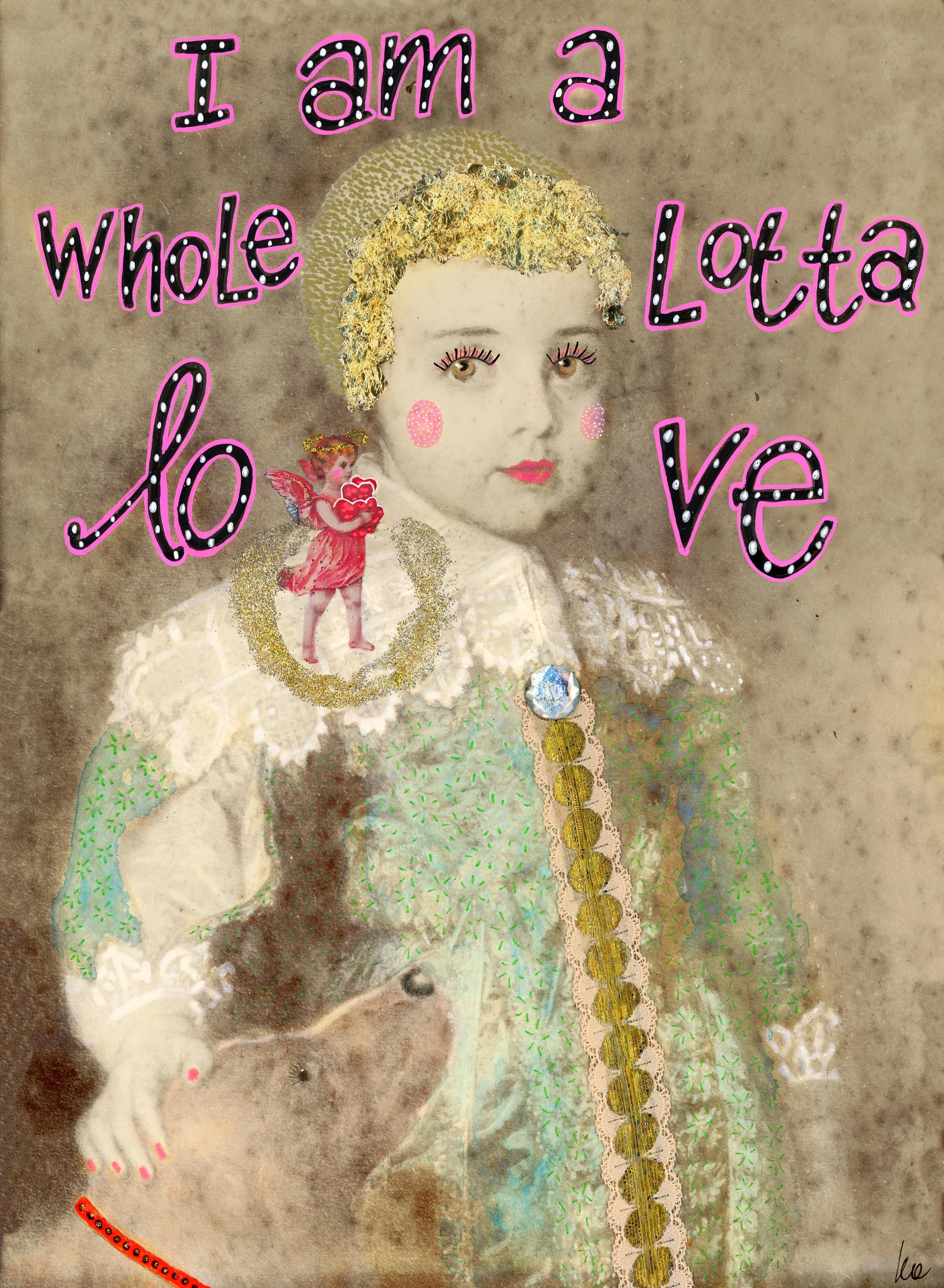 Toveren met kleur, beeld en tekst. Ik knip, plak, schrijf en schilder vanuit mijn hart in mijn atelier in Naarden-Vesting. Ik maak ook collages en gebruik daarbij vintage tijdschriften / boeken en ansichtkaarten. Mijn schilderijen maak ik op canvas met acrylverf, spraypaint waarbij ik soms pagina’s uit een vintage bijbel of andere antieke boeken verwerk of gebruik maak van zwart / wit foto’s. De boeken en foto’s zijn vaak verkregen uit een erfenis of vind ik op marktjes of in de meest stoffige doch sfeervolste winkeltjes in verborgen straatjes van Parijs of New York. Pareltjes dus, want weet je, alles is er al! Het papier is vergeeld, bijna zijdezacht geworden en al door vele handen gedragen en door vele ogen gelezen.